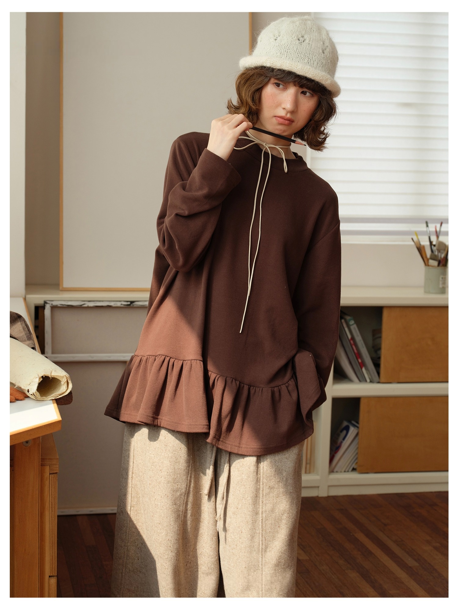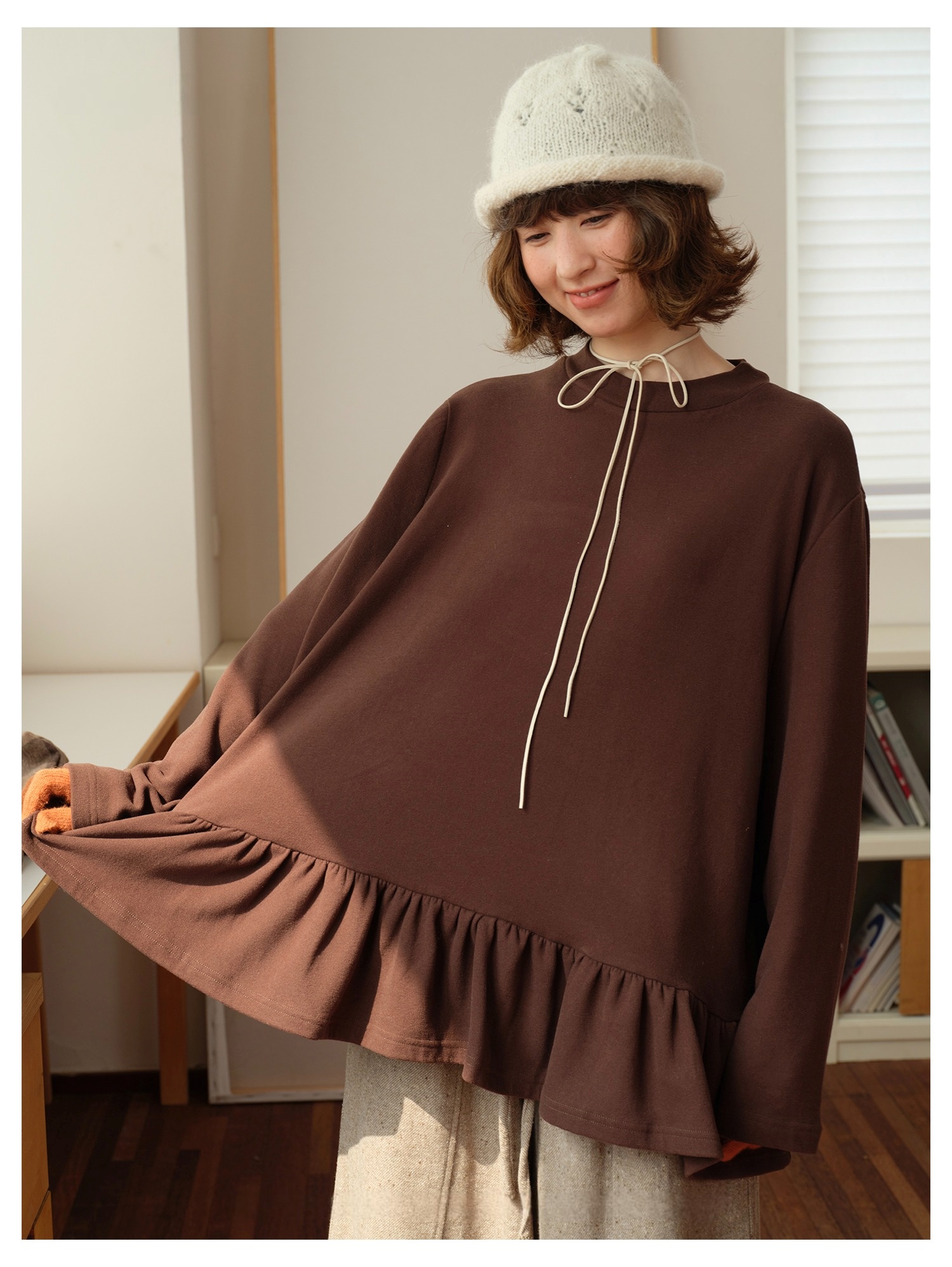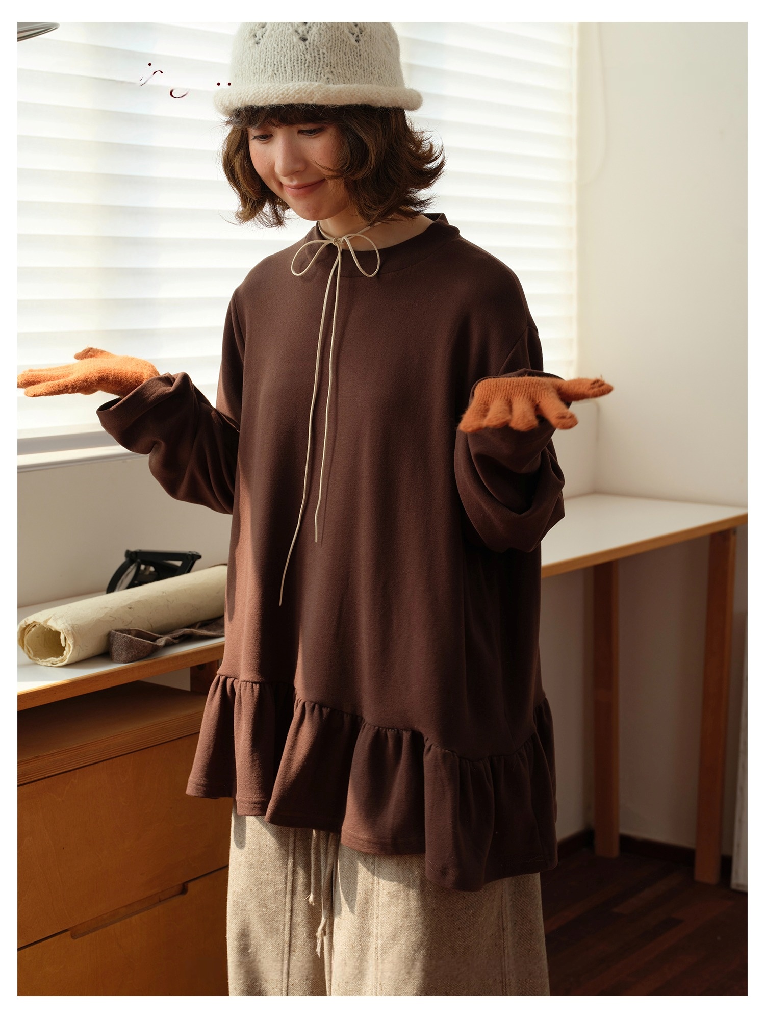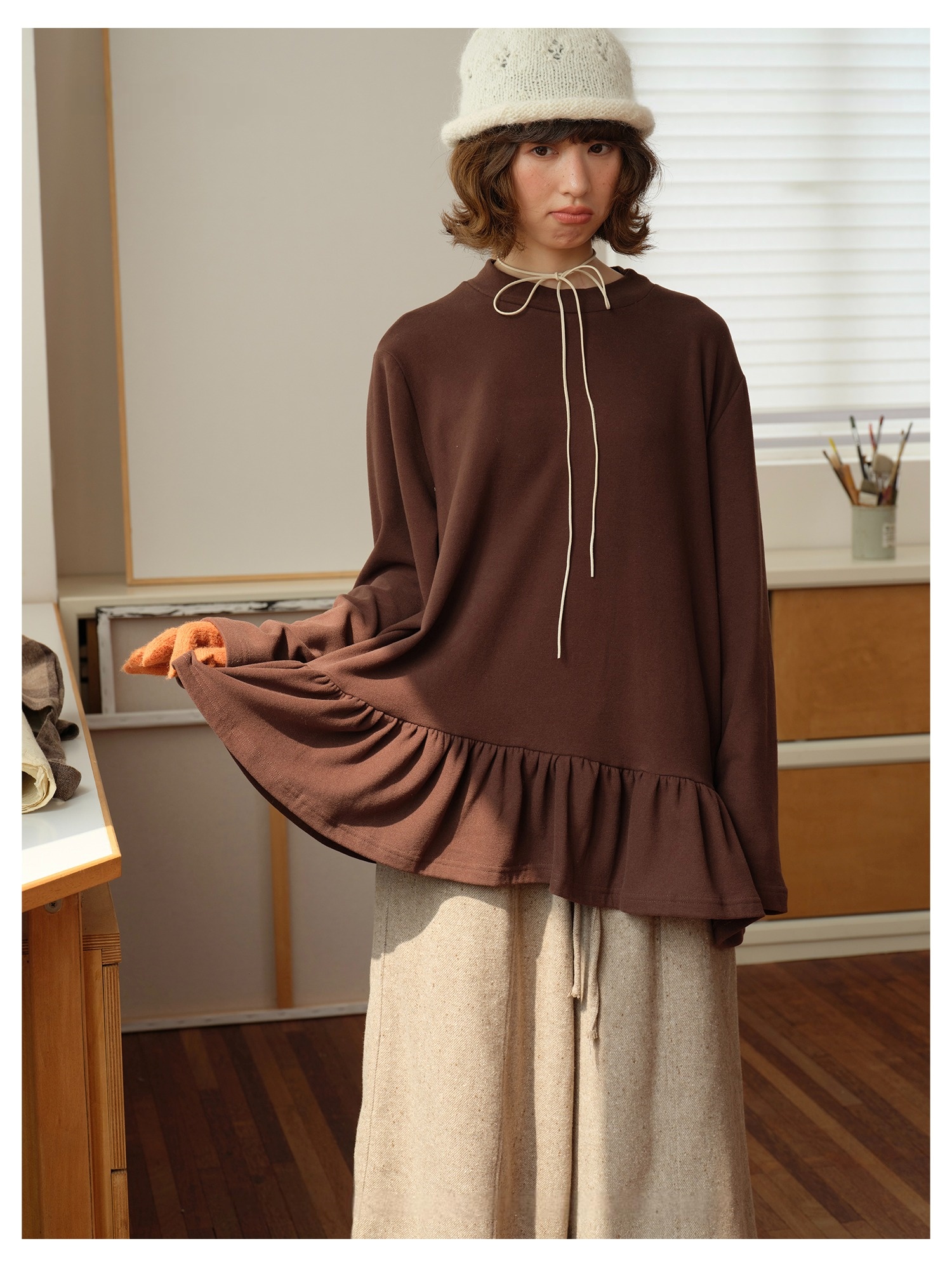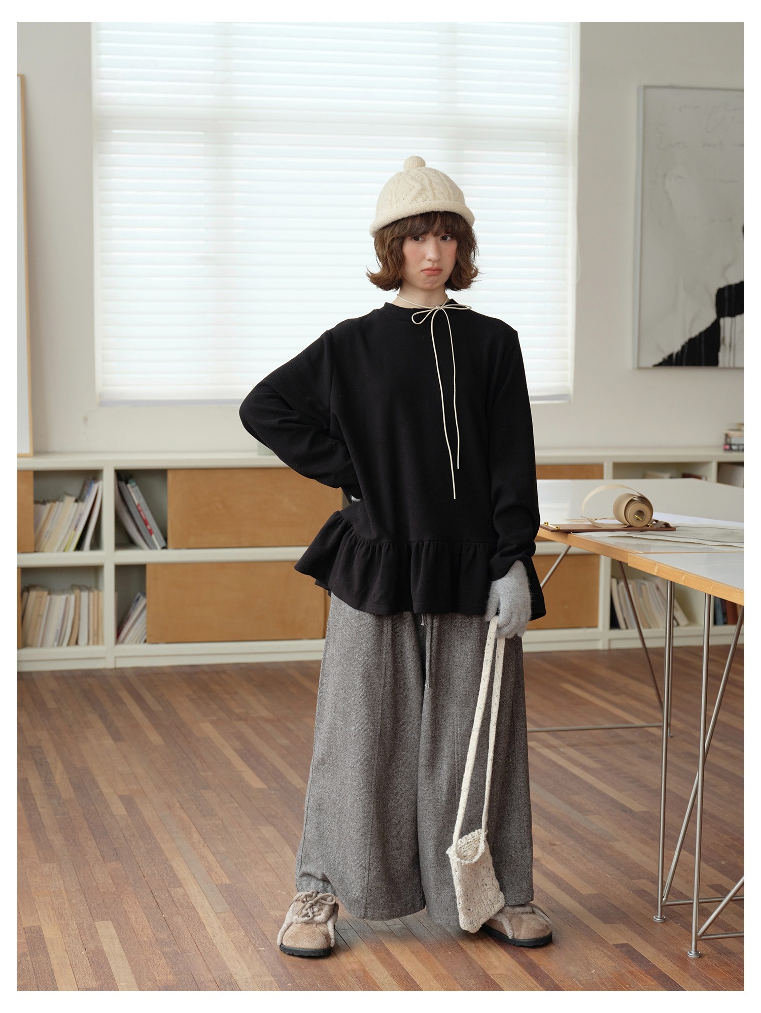 Model 身高:160 公分 / 體重:45 公斤 / 試穿尺寸:F