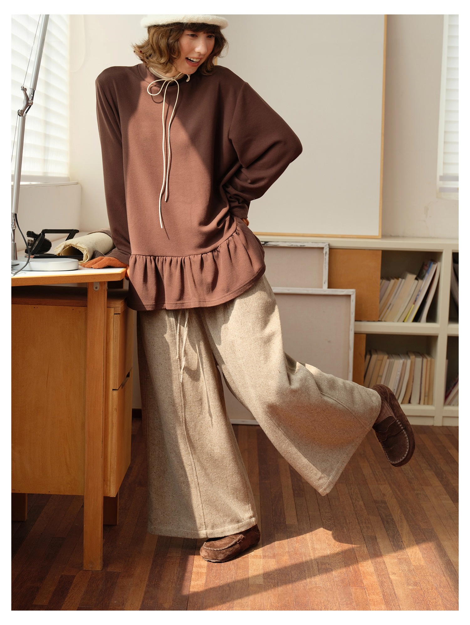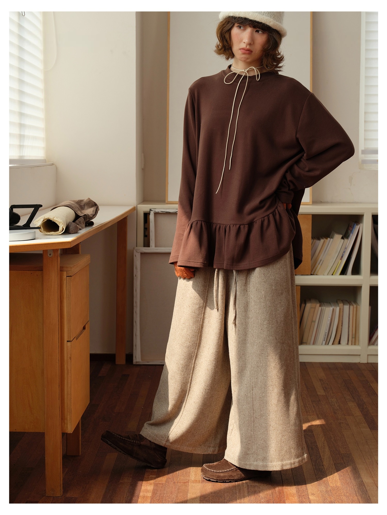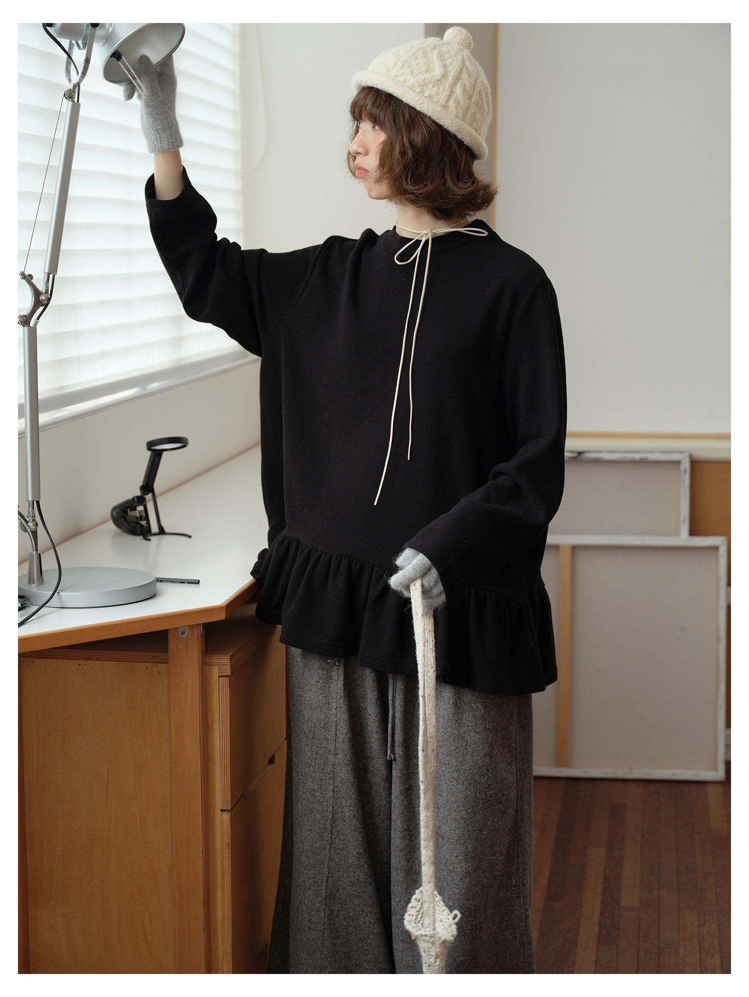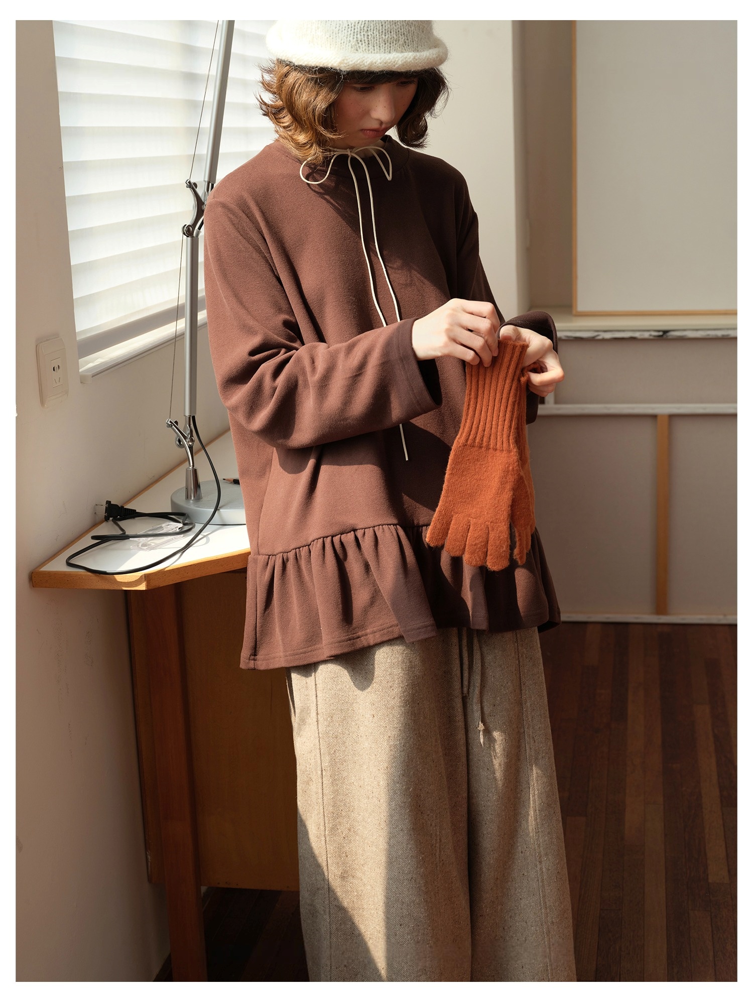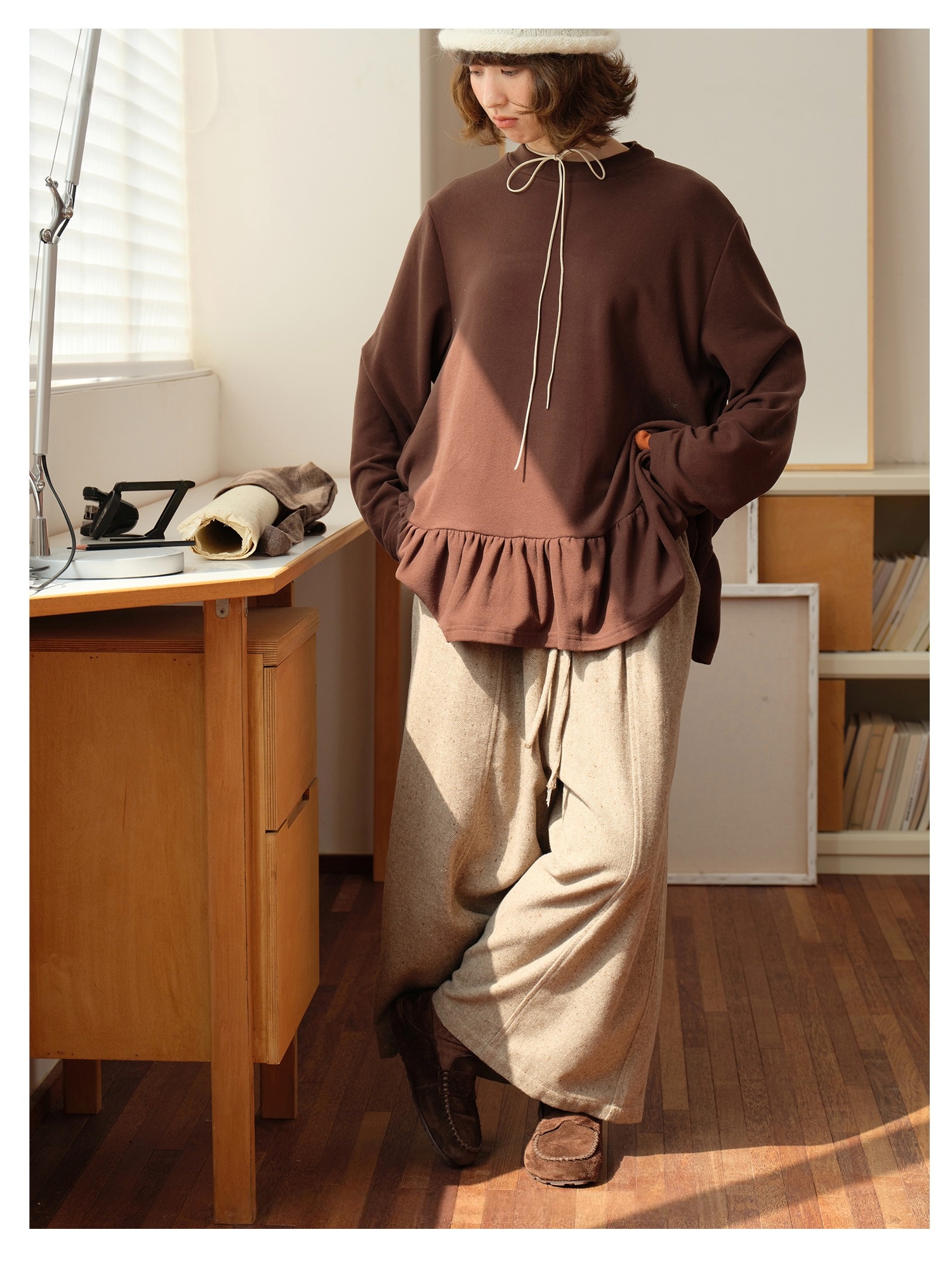 Model 身高:160 公分 / 體重:45 公斤 / 試穿尺寸:F